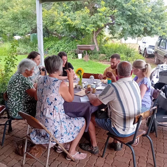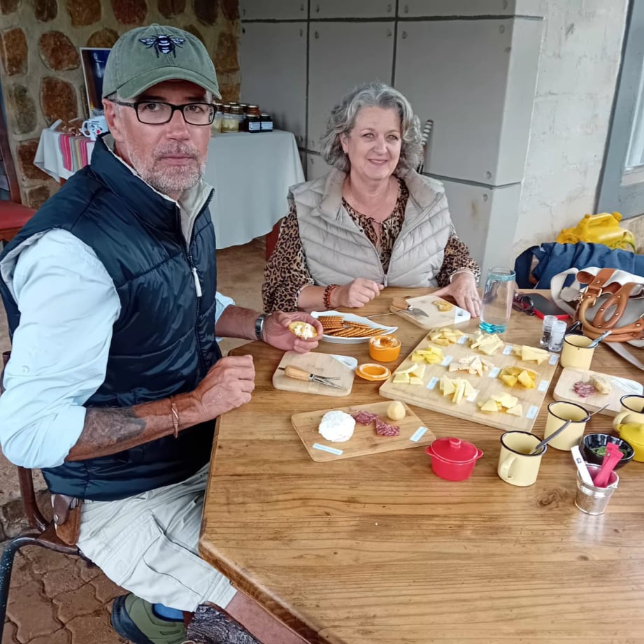 Picture sitting down at granny’s table: warm, cosy, slightly mismatched, and overflowing with generosity. Santie sets out a beautiful spread of her handcrafted cheeses—each with its own story—and invites guests to bring a bottle of wine to enjoy alongside the tasting.